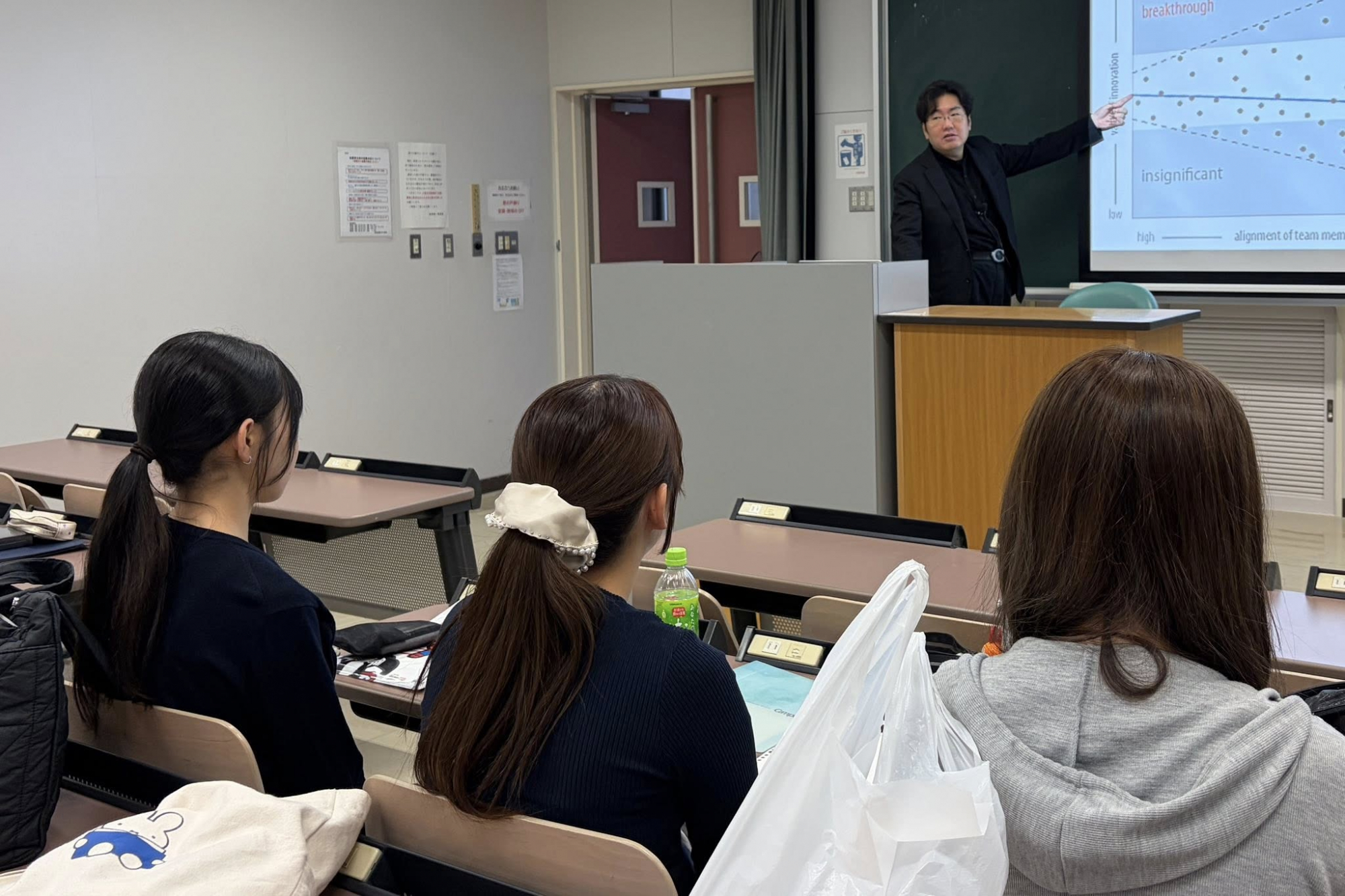 2025.11.19 大学院 経済学研究科「中小企業経営」(担当:中西孝平教授)で福井大学の竹本拓治教授とコラボ授業を開催