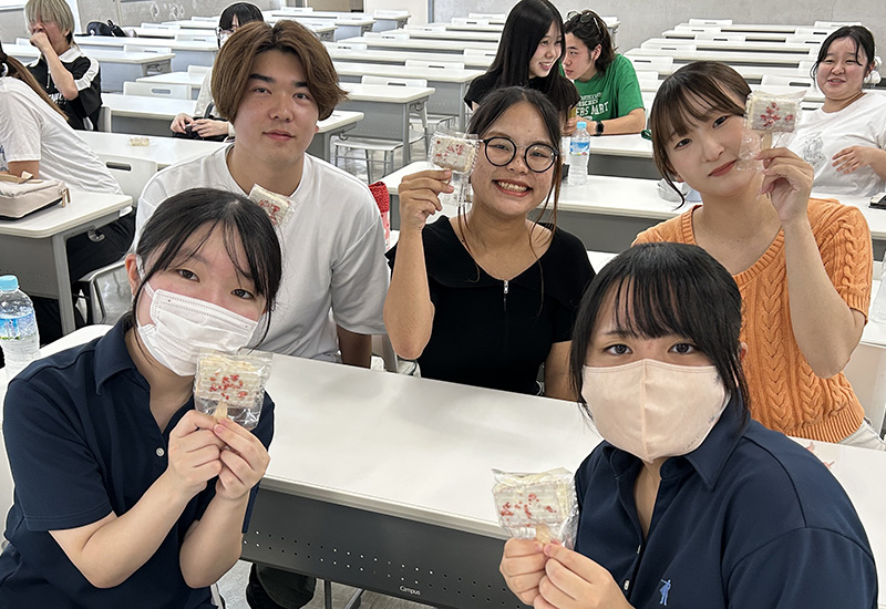 2025.11.14 地域連携・研究 経営学科・中西ゼミの2年生、クラーク記念国際高校生と開発商品の試作品を検討