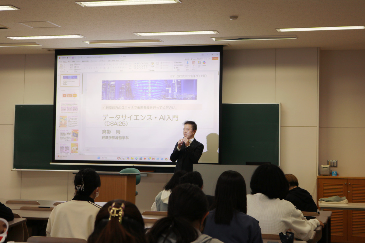 鹿児島国際大学では、2023年度から全学部生を対象としたリテラシーレベルの「数理・データサイエンス・AI教育プログラム」を開始しました。本学学生の数理・データサイエンス・AIへの関心を高め、かつ、数理・データサイエンス・AIを適切に理解し、それを活用する基礎的な能力を育成するために必要な知識及び技術を体系的に修得させることをプログラムの目的としています。