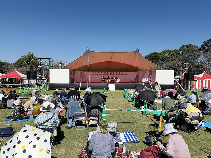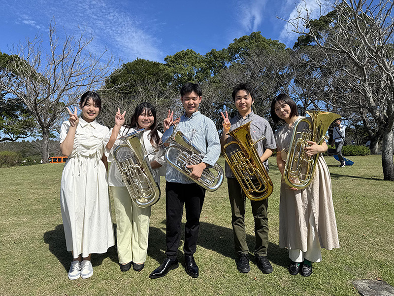 10月26日(日)に知覧平和公園自由広場で開催された「知覧小京都ふるさと祭」にて、音楽学科の学生が演奏を披露しました。この催しでの演奏は今年で3年目となりますが、昨年に引き続き、今年もユーフォニアム四重奏(3年生:上村佳音さん、園田眞歩さん、2年生:勝本遥希さん、1年生:木原悠翔さん)が観客を魅了しました。