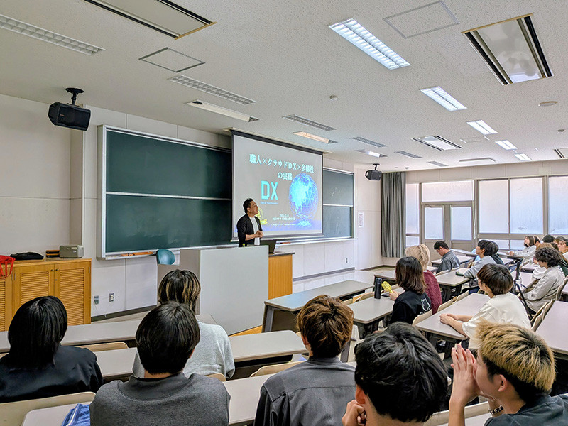 このイベントは、鹿児島県内企業の現状や課題などを学ぶことを目的として、鹿児島県内で活躍する経営者を講師としてお招きし、講演をしていただくというものです。鹿児島県中小企業家同友会のご協力により、毎年2回実施しており、今回はその第1回目でした。