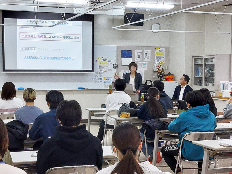 11月19日、全国で介護事業を展開する株式会社ベネッセスタイルケアから講師2名をお迎えし、「介護業界におけるICT活用の今と未来」をテーマとした特別講義を開催しました。