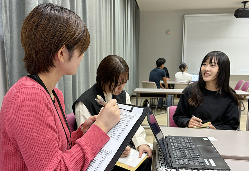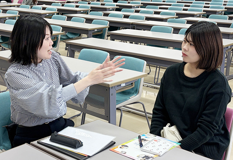 中西ゼミ3年の安藤さくらさんは「観光、金融、福祉等、さまざまな業種の採用担当者にお目に係ることができ、とても有意義な時間を過ごすことができた。今回の取り組みで得た知識を基に、キャリア形成についてしっかりと考えていきたい」と語っています。