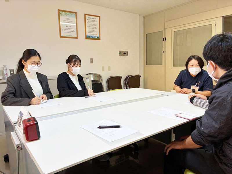 まず、医療連携・相談室の宮脇氏に、病院の概要の説明と同院の特色の一つである緩和ケアについて説明をしていただきました。特に、緩和ケア病棟の理念や病棟の基本方針、役割と特徴について詳しくお話しいただき、ゼミ生も熱心に耳を傾けていました。その後、宮脇氏と病棟師長に、緩和ケア病棟の見学案内と説明をしていただきました。ゼミ生は、普段の講義やこれまでの実習の中で出てきた疑問を解決しようと、それぞれに質問していました。ゼミ生たちにとって、これからの精神医療のあり方について深く考える機会となりました。