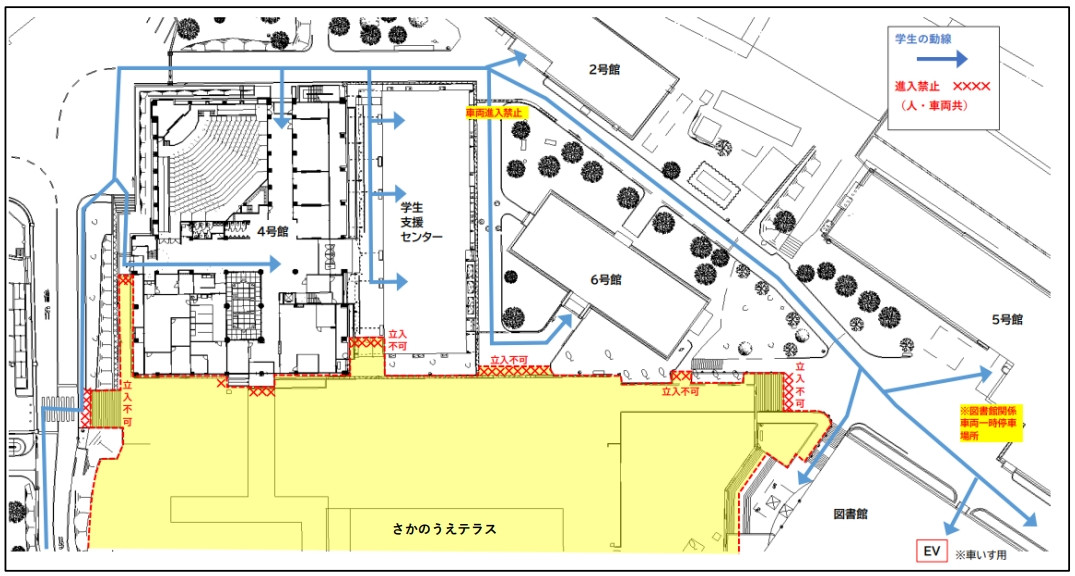 引き続き、安全確保のため、立入禁止エリア(黄色塗りつぶしエリア)への立ち入りはお控えいただきますよう、ご理解とご協力をお願いいたします。