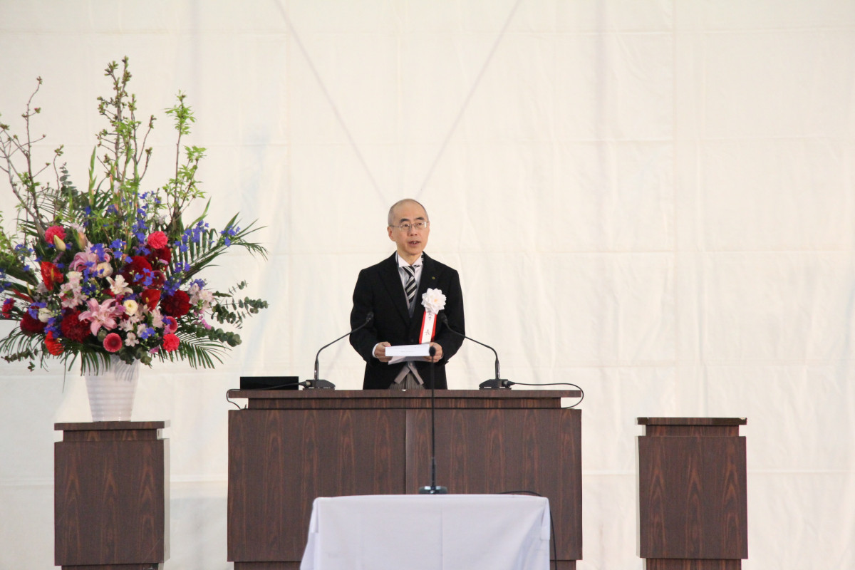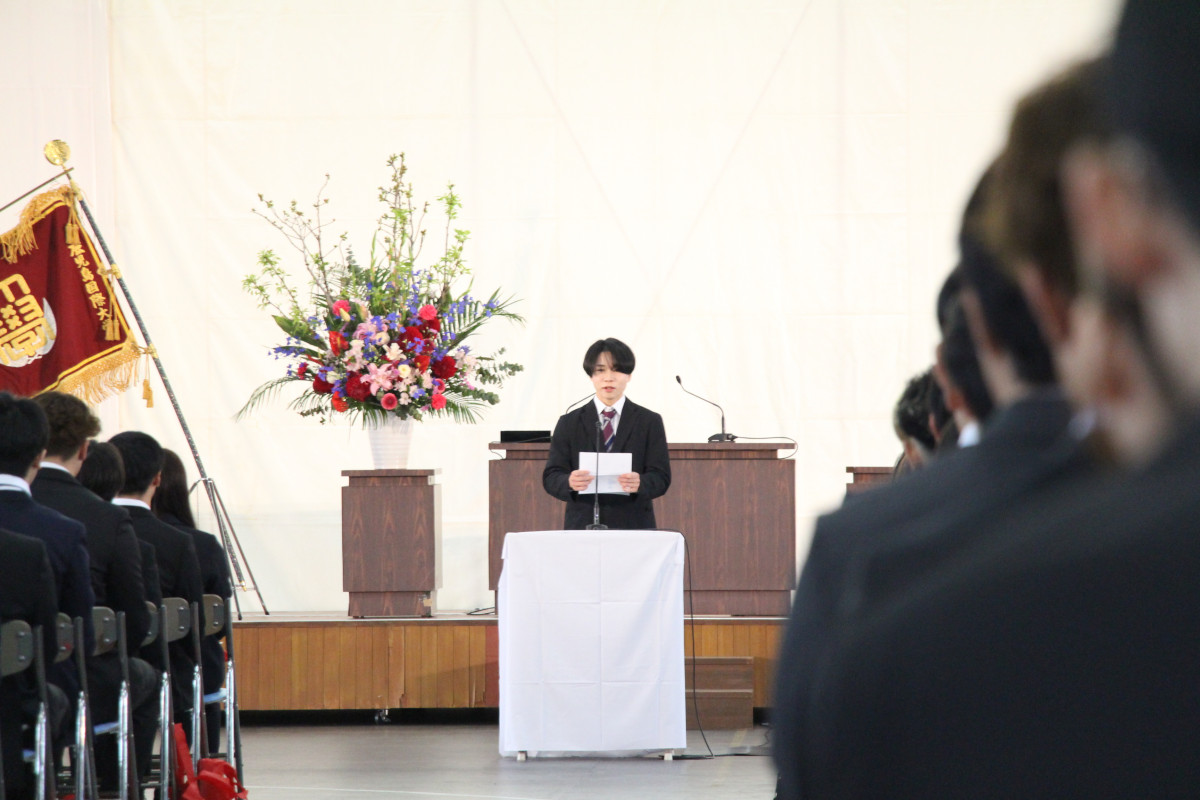 式では、小林潤司学長が式辞を述べたほか、入学生を代表して経済学部 経済学科の小牧 李歌さん(加治木高等学校出身)が「入学生宣誓」を行い、在学生を代表して学友会総務委員長の池田 悠人さん(国際文化学科4年)が在学生歓迎の辞を述べました。