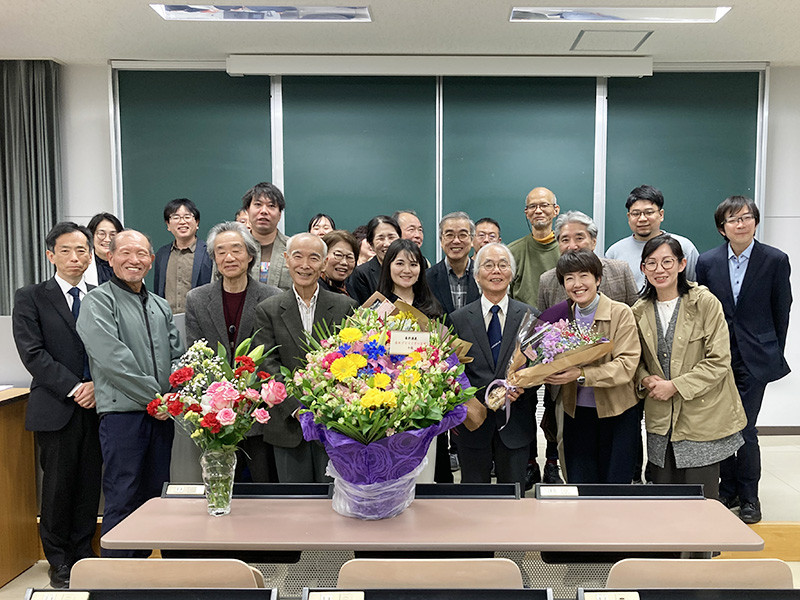 当日は、学科教員以外にも、長く学内でともに仕事をされてきた他学科の先生方、大学院で指導を受けた方々、短期大学で教鞭をとられていたときの卒業生の方々、またオンラインで遠方の方々の参加もありました。参加者からは講演の感想や思い出話が語られ、最終講義に相応しい盛況な講演会になりました。