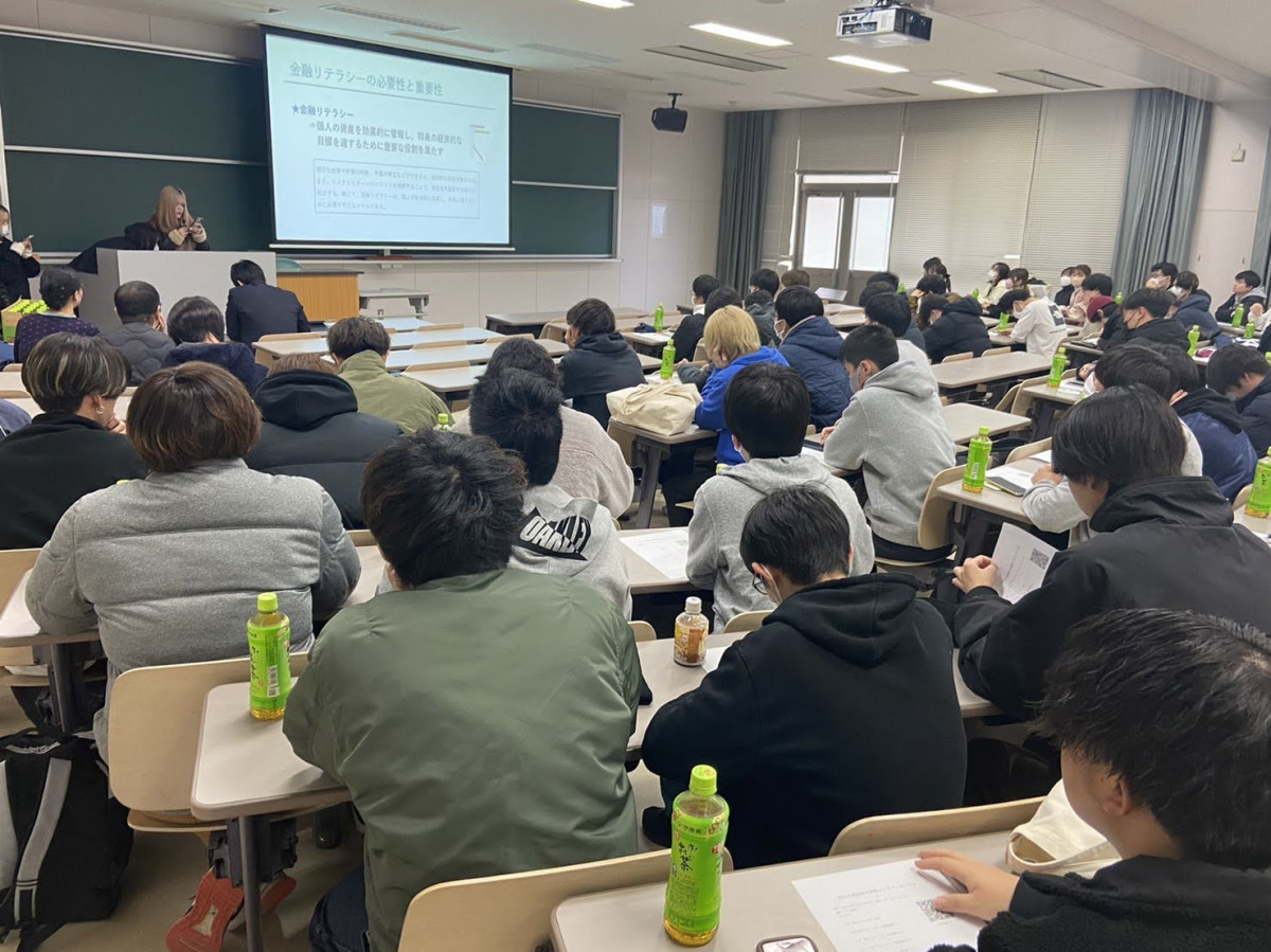 1月25日、経済学科の新入生向けの授業「新入生ゼミナールⅡ」の最終日にてプレゼンテーション大会が開催されました。この大会に向けて各組の1年生は自分たちの興味のある話題や地域の課題について、後期の授業で学んだことをもとに調査・研究を行ってきました。プレゼン大会では各組から選ばれた代表のグループが1年生全員の前で発表を行い、聴講した1年生および教員の投票をもとに優勝者を決定しました。