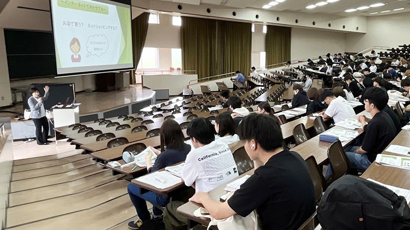 SA(スチューデントアシスタント)として1年生と一緒に講義を聴いていた坂下智海さん(経済学科2年生)は、「普段、目にしたり聞いたりする情報が正しいかどうか判断することは簡単ではないが、今回教えていただいたことを意識するだけでも安全性が増し、トラブルに巻き込まれることは減ると思う」と、講座を振り返りました。