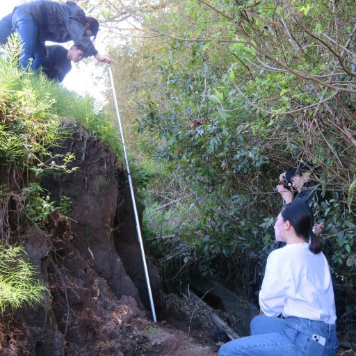 さらに遺跡内にある「支石墓(ドルメン)」とされる大石、地層が見える崖などで、簡易3D計測(LiDAR)や、写真画像から精細な3Dモデルを得るフォトグラメトリ(SfM-MVS)などに挑戦しました。