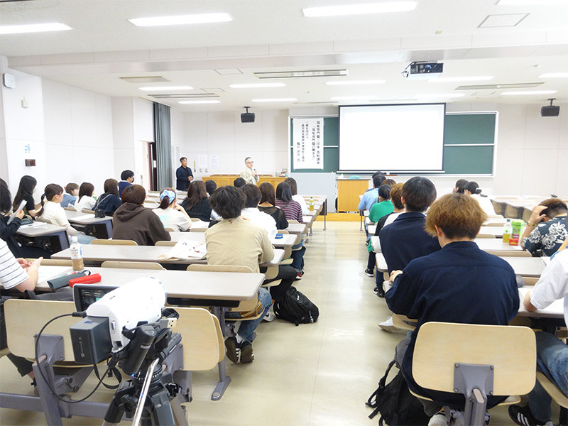 主に1年生を対象にした「鹿児島社会福祉入門Ⅰ」(担当:高橋信行教授)の講義の中で行われました。