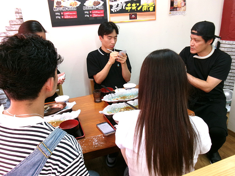 今回の対象店舗は、黒酢チキン南蛮定食たかもとや鹿児島谷山店、PONGEE、BIGMOUTH Shokudo & Partyの3店舗。学生らは、試飲・試食・ヒアリング等を行い、現場の現状や課題を直接確認しました。