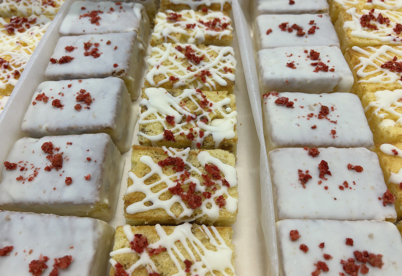 その名も「恋するパウンドケーク」。薄力粉とバターを使ったパウンドケーキをホワイトチョコでコーティングし、その上にイチゴフレークをあしらった「恋のコミュニケーション・ツール」です。