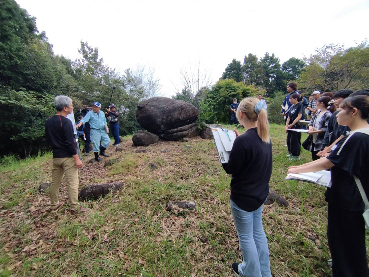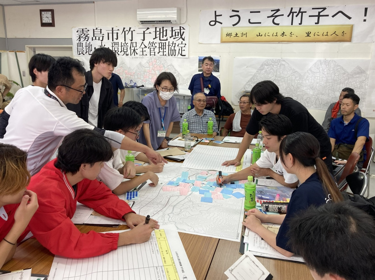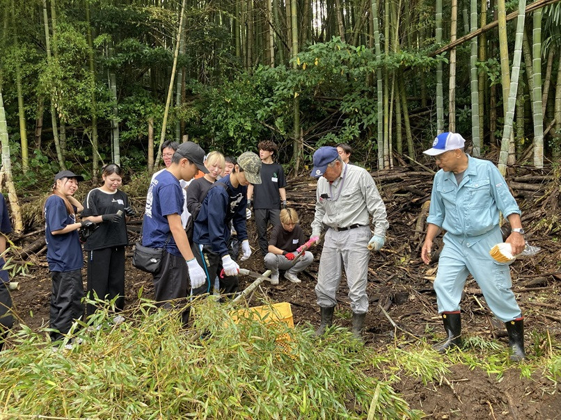 今回は、霧島市溝辺町竹子地区で実施され、31名のゼミ生が参加しました。地元住民とコミュニケーションをとりながら、3コースに分かれて竹子を探検し、各コースの現状や課題を整理しました。また当日は、地元のしし汁やおにぎりを味わったり、竹切り体験をしたりするなど、地域の方々に温かく迎えていただきました。