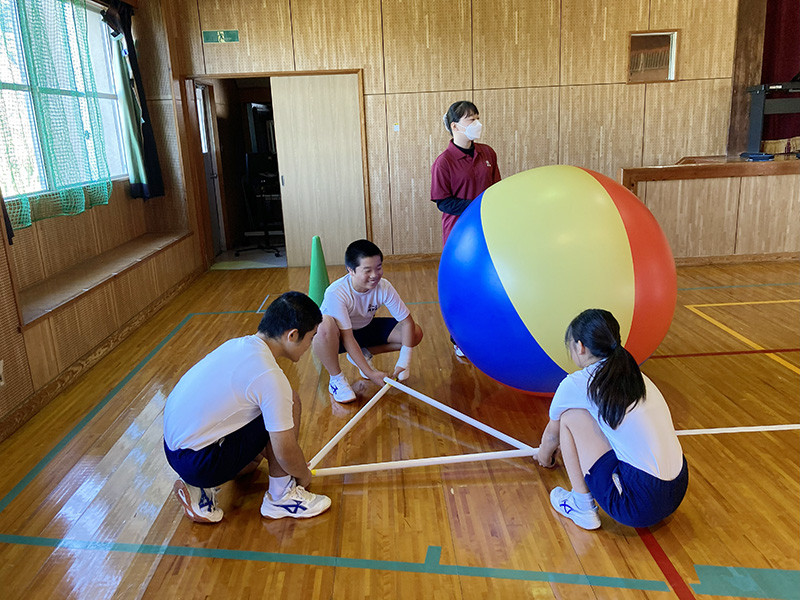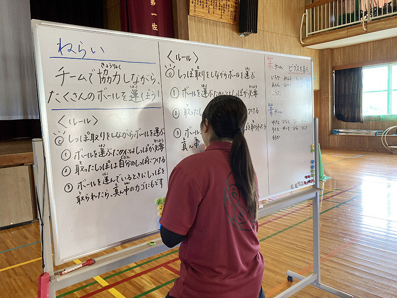 「夢の体育授業で子どもたちが楽しんで体を動かす姿を見て、子どもたちが楽しく授業に参加できるようにするためにはどのような工夫が必要なのかを、教師自身がしっかりと教材研究することが大切であることを学ぶことができた」(四年 杉木万里奈)
