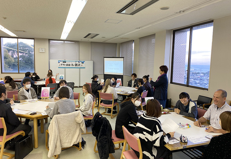 「散走(さんそう)」とは、散走とは、自転車でのんびり地域を巡り、自然や文化、食などを気軽に楽しむ新しい地域観光のスタイル。室谷氏のレクチャーの後、散走プランづくりへ。「南さつまの砂と海と食」「桜島を丸ごと楽しむ散走」など、多彩なアイデアが生まれました。学生、自治体職員、地域おこし協力隊、サイクルツーリズム関係者など立場の異なる参加者約30人が、和やかに交流する姿が印象的でした。