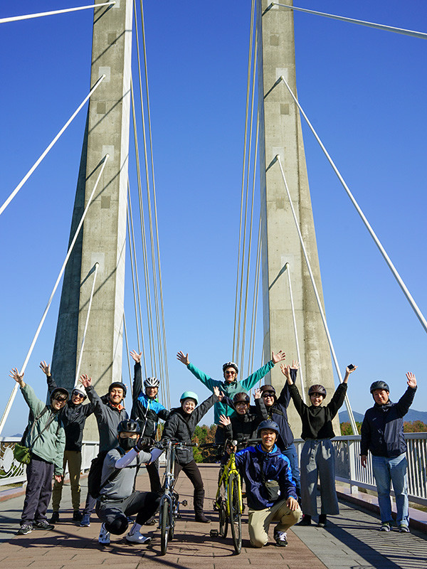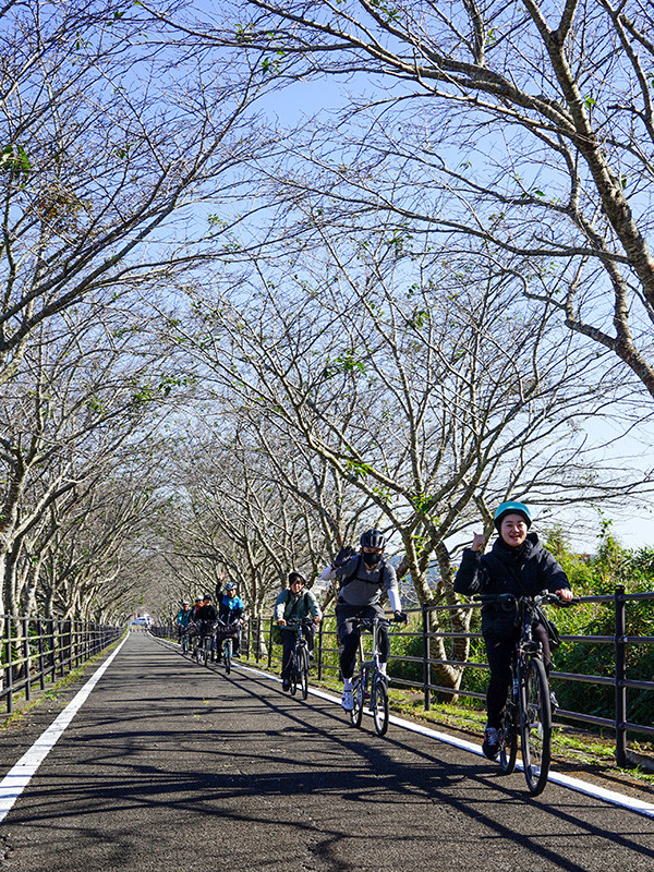 当日は快晴に恵まれ、吹上浜海浜公園、サンセットブリッジ、益山八幡神社、旧南薩鉄道路線跡の「りんりんロード」など、車では立ち寄りにくい地域の魅力を自転車で巡りました。