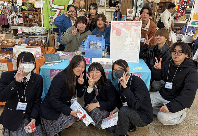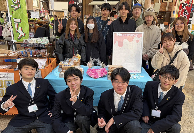 11月30日、経営学科・中西ゼミの2年生が鹿児島県知的障害者福祉協会主催のイベント「WAQ×WAQ SQUARE」に出店し、同ゼミとクラーク記念国際高校の共同開発商品「恋するパウンドケーク」を販売しました。