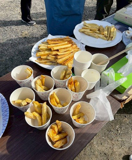 社会福祉学科の川﨑ゼミは、12月6日に「さつまいもマルシェ」に参加しました。このイベントは、地域の魅力・活力共創事業(空き家を活用した交流拠点の運営支援事業)の一環で毎年開催されています。本学からは、川﨑ゼミ生7名が参加して、広報用のチラシ作成やイベント内のブースのサポート、イベント終了後のSNSでの情報発信を担当しました。当日は、さつまいも関係のブース(焼きいも、揚げいも・焼き団子)、着付け、ワークショップを運営しました。地域の皆さんにも温かく迎え入れていただき、充実した時間を過ごすことができました。