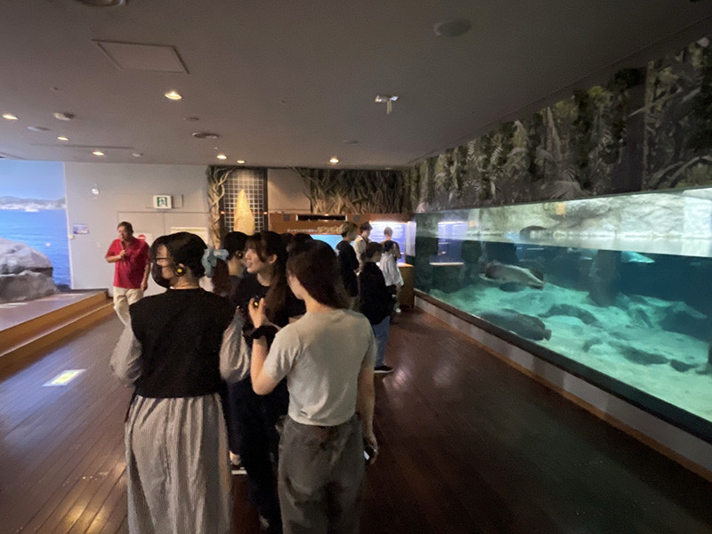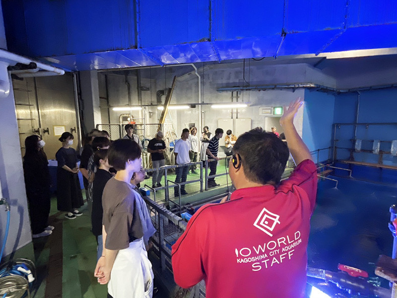 本イベントの準備として、これまで複数回にわたり水族館を訪問してきました。7月13日に第1回バックヤードツアーを実施し、館内の構造理解を深めました。あわせて、いおワールドかごしま水族館の佐々木館長より講話を伺い、水族館が地域貢献に込める想いについて理解を深めました。