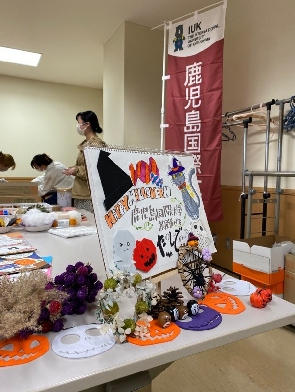 社会福祉学科の茶屋道ゼミは10月21日、鹿児島市精神保健福祉交流センター(愛称:はーと・ぱーく、施設長:町かおり氏)で開催された地域交流イベント「はーと・まるしぇ」で、ワークショップのハロウィン・リース作りを実施しました。